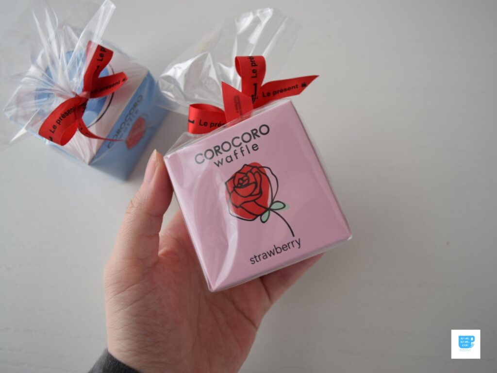 ひと口サイズのワッフルクッキー、コロコロワッフル。↑は母の日のパッケージです。メッセージ入りのプチコロコロもあります。