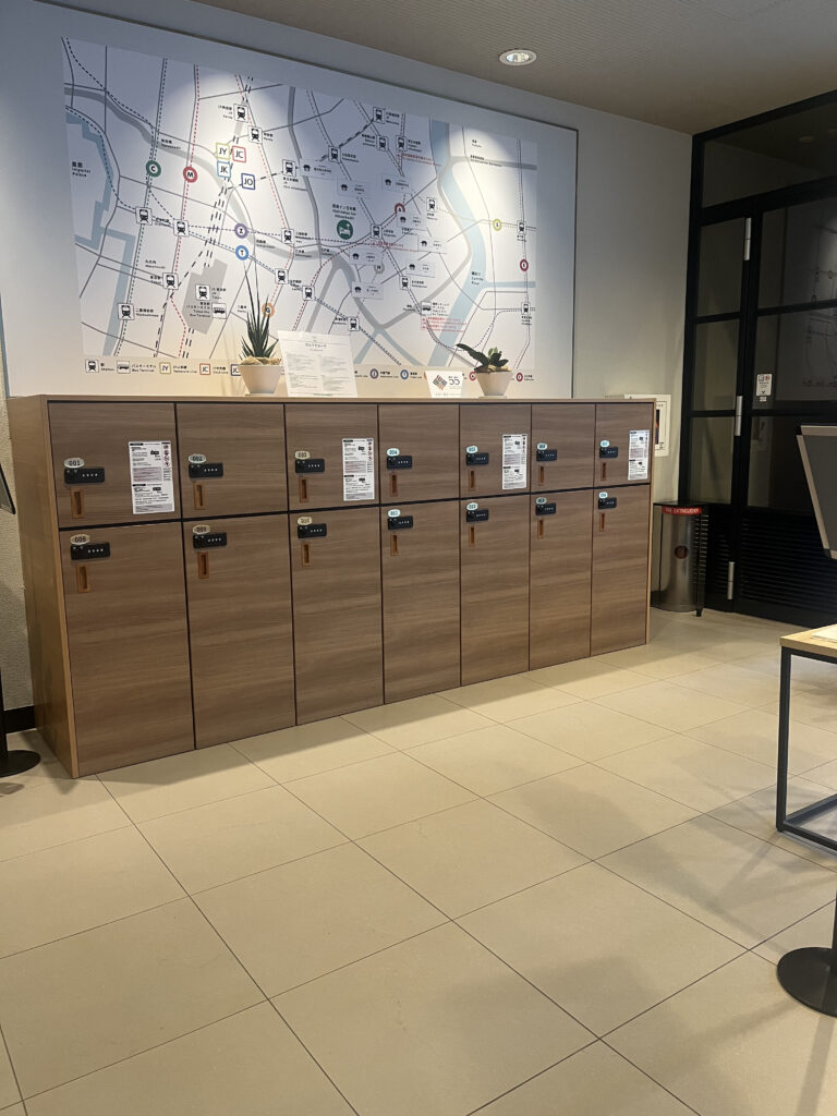 外観は少し古いですが、内装はリニューアルされています。特にいいなと思ったのは、宿泊者専用のロッカー。チェックイン前やチェックアウト後、フロントの方に荷物を預かってもらう必要がなく、宿泊者にも便利な施設だなと思いました。