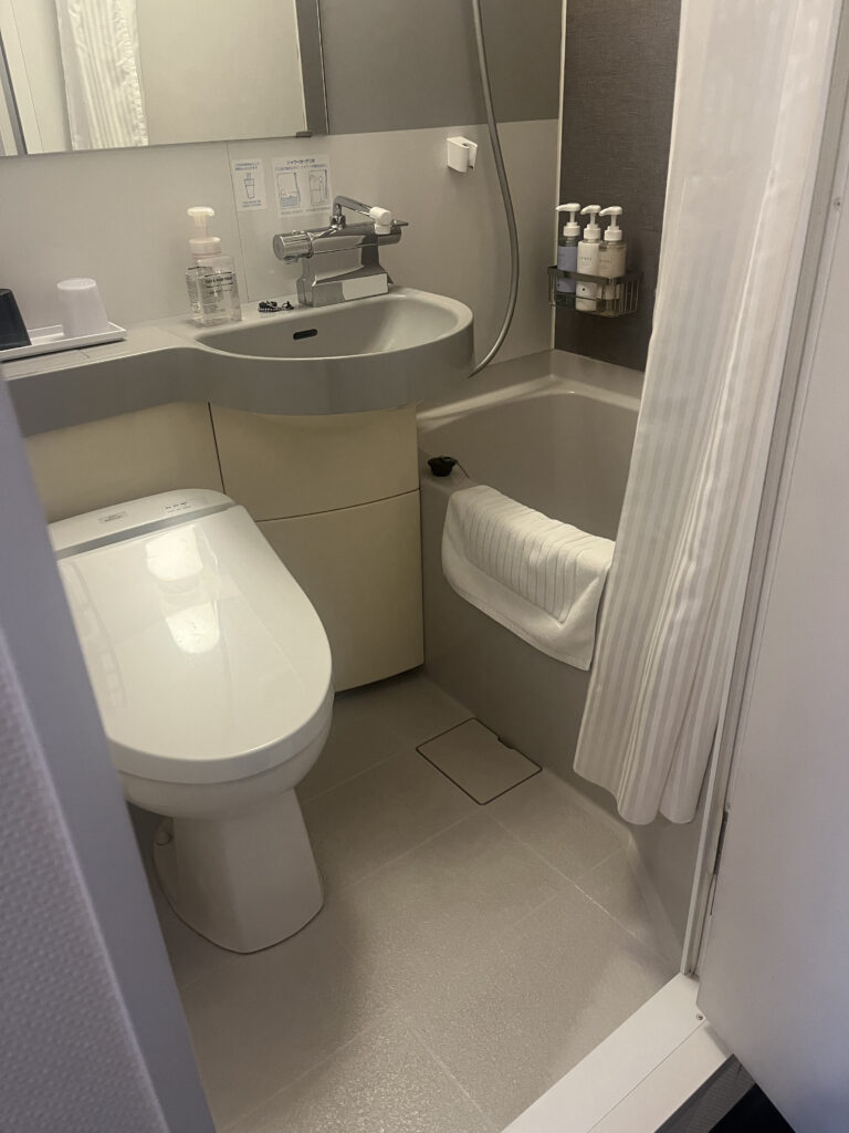 ユニットバスは特筆すべきことはなさそうですが、アメニティは少なめです。エレベータ横にアメニティバーがありますが、歯磨きなど最低限という感じでした。